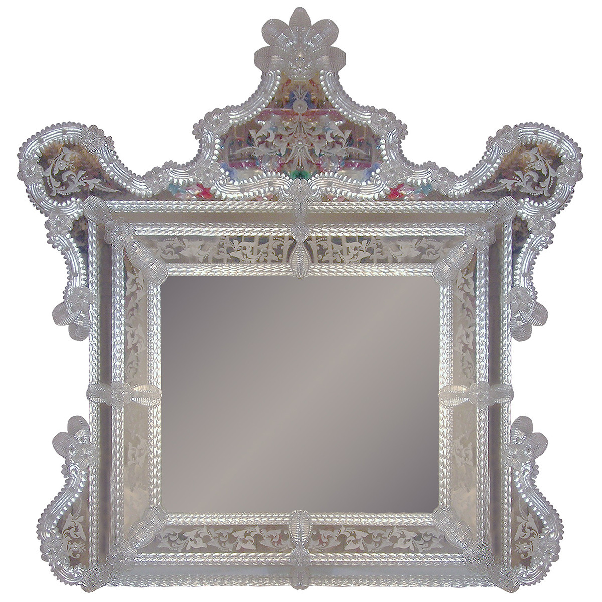 Loading... Please wait...A timeless masterpiece, a mirror even Juliet would recognize. This Murano glass mirror of the Venetian style will impress as well as reflect. Handmade in Venice, Italy.