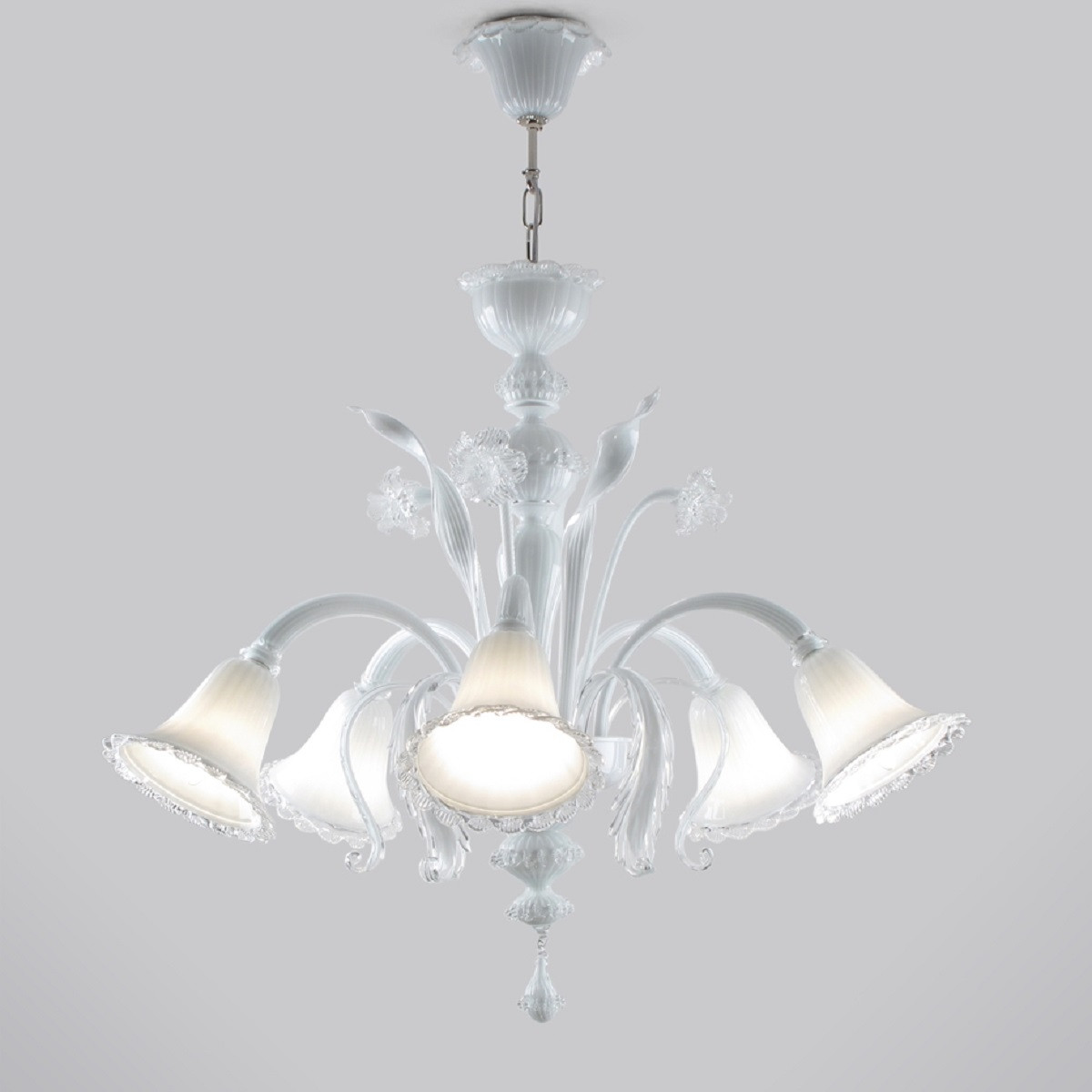 Loading... Please wait...5 lights Murano glass chandelier in white layered crystal glass.